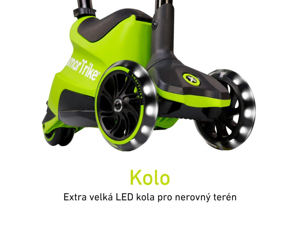 Extra velká přední LED kola – zajišťují hladkou jízdu i na nerovném povrchu