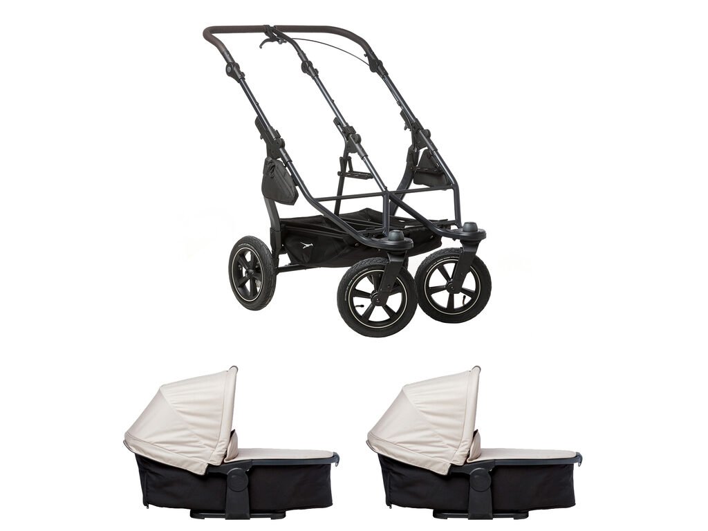 TFK duo2 – kombinovaný kočárek pro dvojčata nebo sourozence (konstrukce + hluboká korba duo2 combi)
